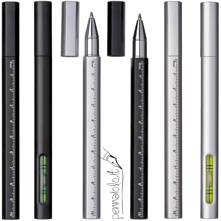 Penna in plastica riciclata SHAPE con righello e livella, chiusura con cappuccio |
